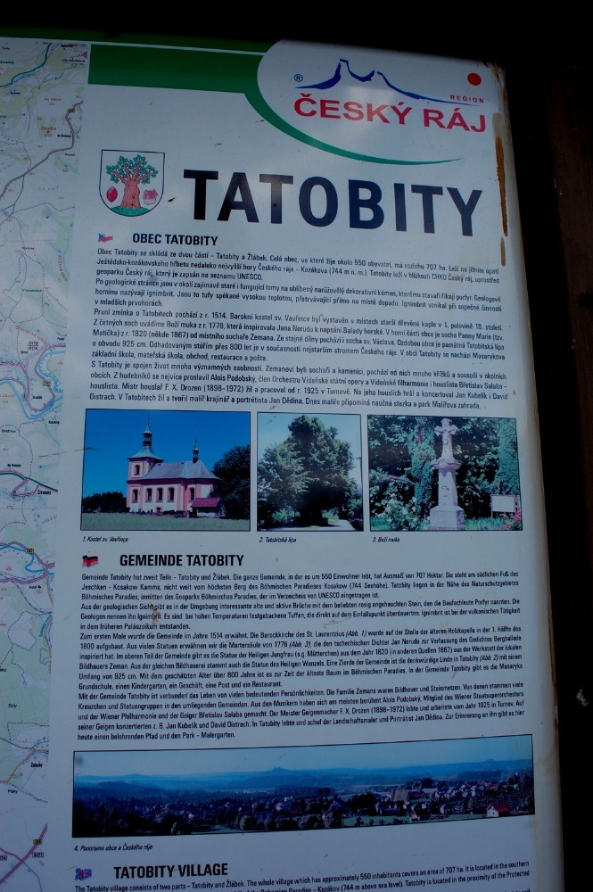 Navštívili jsme zahradu malíře Jana Dědiny, rodáka z Tatobit (ty houbičky jsou z ní), tisíciletou lípu, cvalíka svatého Václava, kříž, který inspiroval Nerudu k Baladě horské, Matičku nad Tatobity ( nechal ji postavit dědeček Oldřišky), Hančin dům, ale Pěničkovi nebyli doma, zastavili jsme se i na Kozákově.