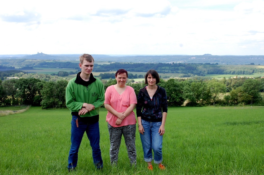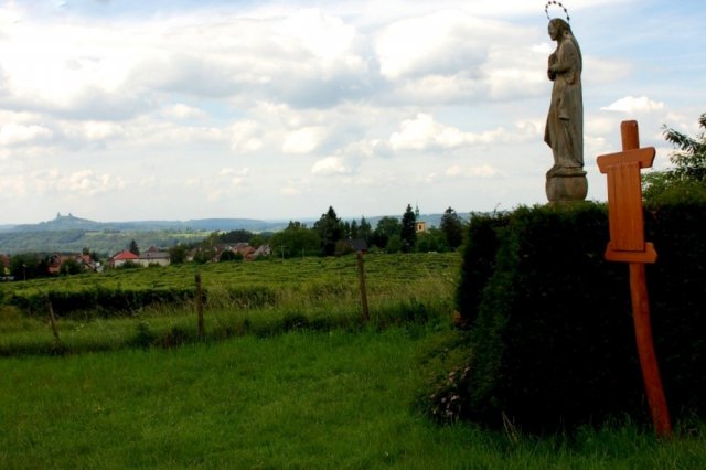 Navštívili jsme zahradu malíře Jana Dědiny, rodáka z Tatobit (ty houbičky jsou z ní), tisíciletou lípu, cvalíka svatého Václava, kříž, který inspiroval Nerudu k Baladě horské, Matičku nad Tatobity ( nechal ji postavit dědeček Oldřišky), Hančin dům, ale Pěničkovi nebyli doma, zastavili jsme se i na Kozákově.